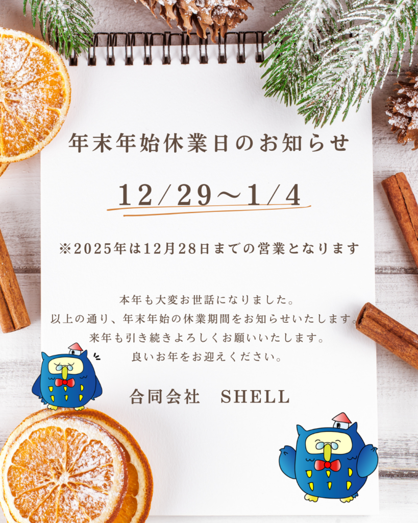 2025年12月29日(月)~2026年1月4日までお休みを頂戴いたします。